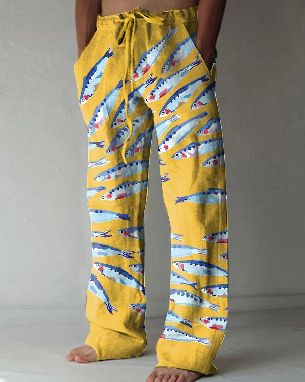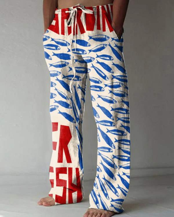 Japanese Sardines Art Print Casual Pants