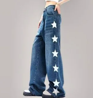 Women's black and white star-print jeans